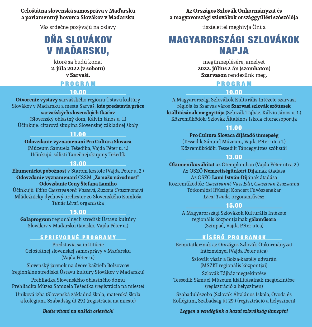 Magyarországi Szlovákok Napjaszo02júl10:00szo16:0010:00 - 16:00 Evangélikus Ótemplom és környékeCompleted