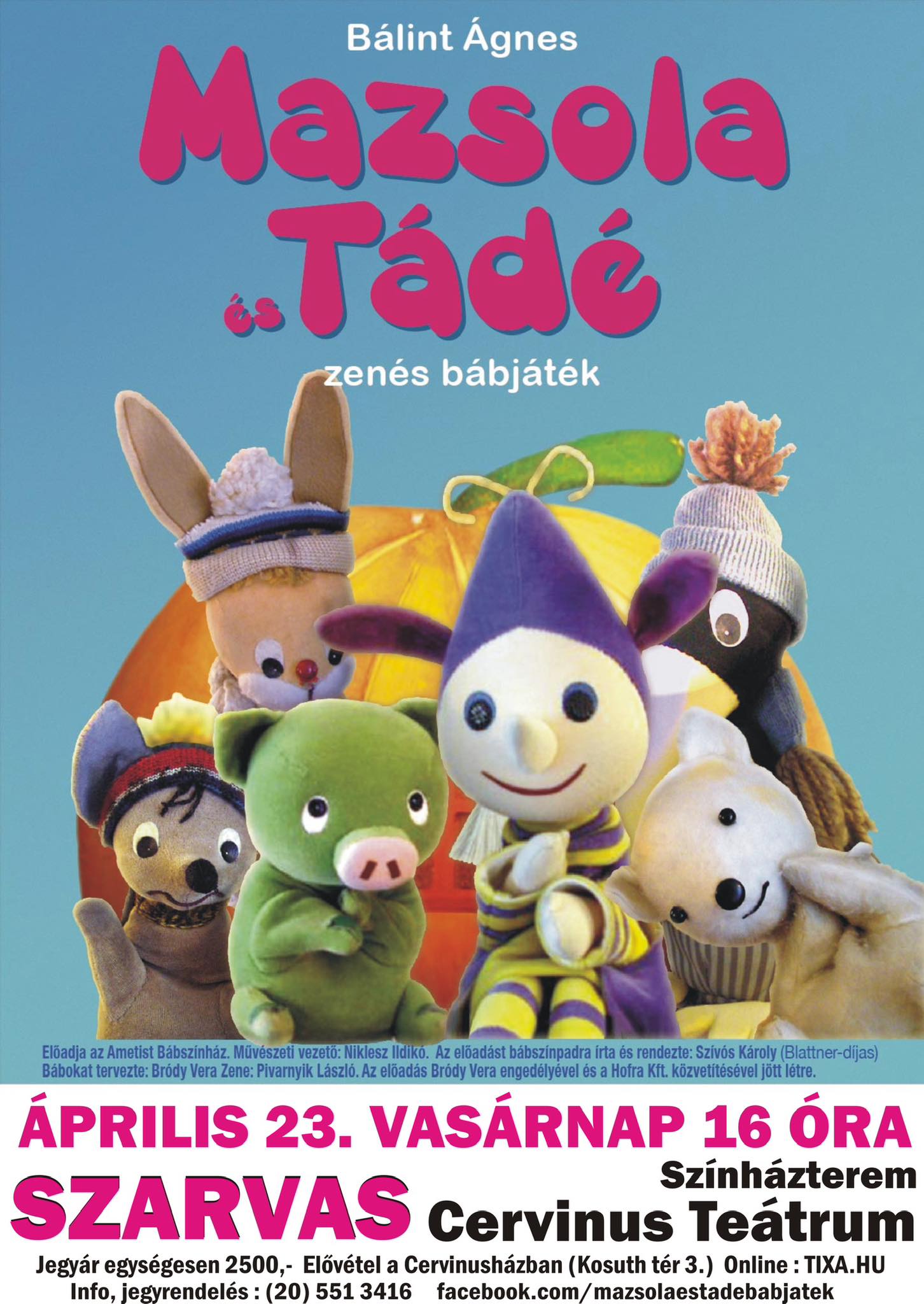 Mazsola és Tádé - zenés bábjátékvas23ápr16:0016:00 Cervinus Teátrum, Kossuth tér 3.Completed
