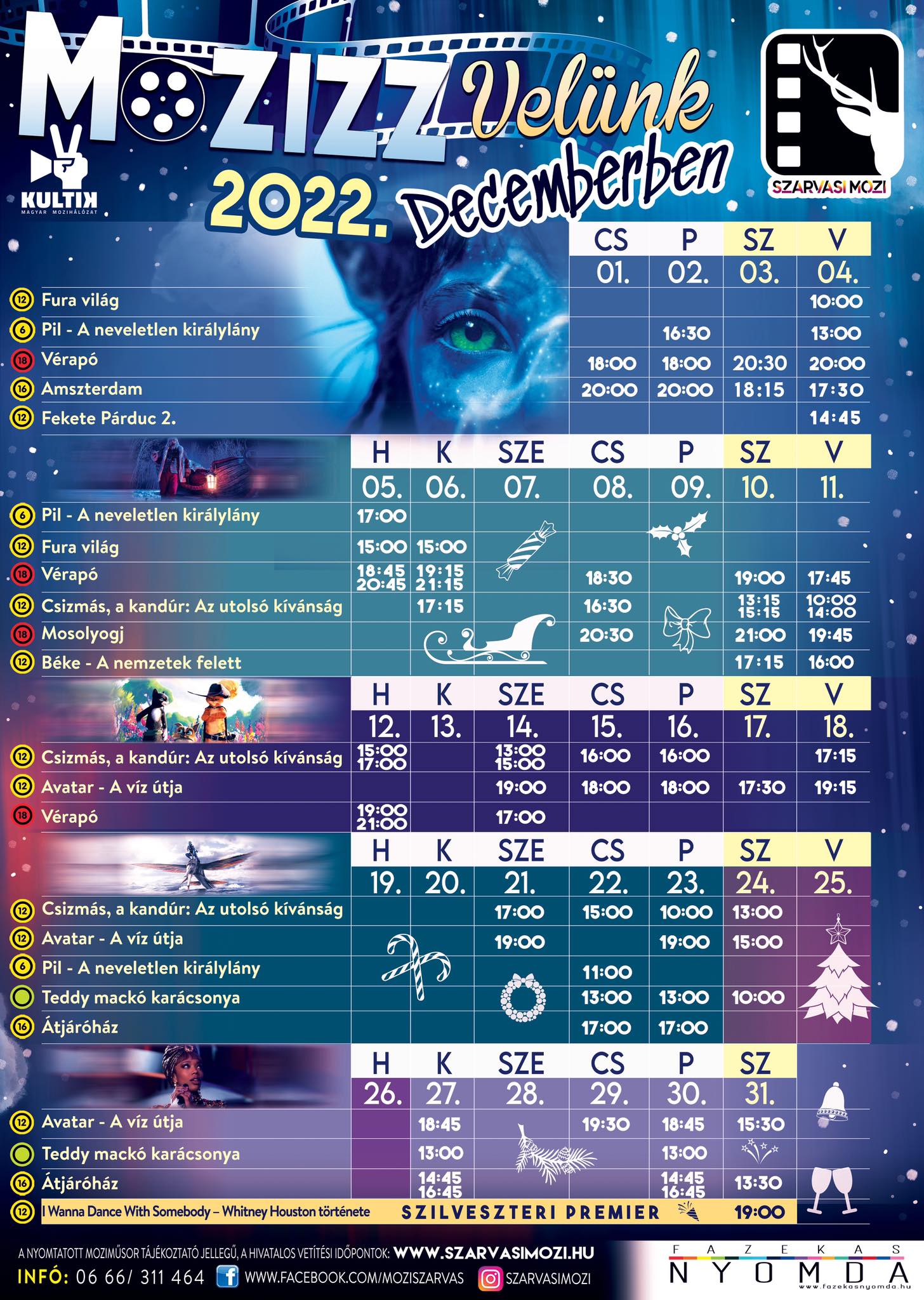 Moziműsor – decemberdecHavi esemény (december) Szarvasi Mozi, Kossuth tér 3.