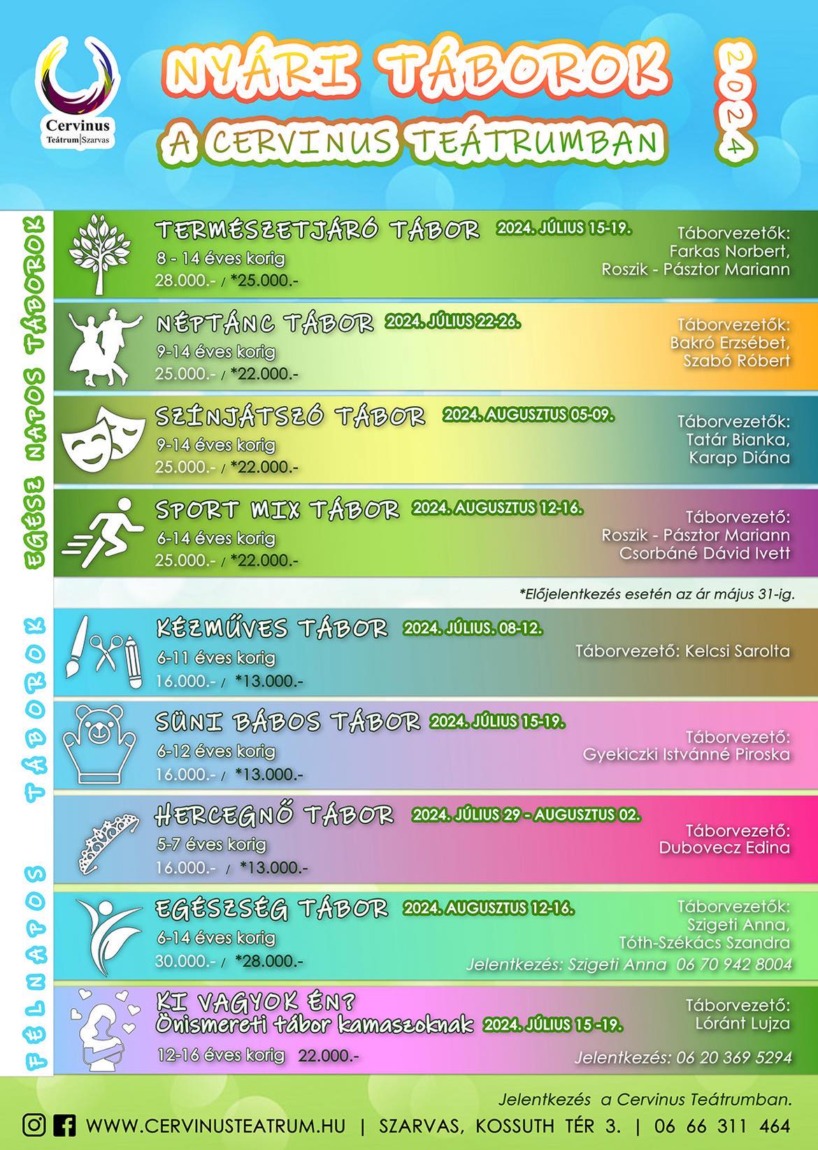 Nyári táborok - Cervinus Teátrumhé08júl08:0008:00 Cervinus Teátrum, Kossuth tér 3.Completed