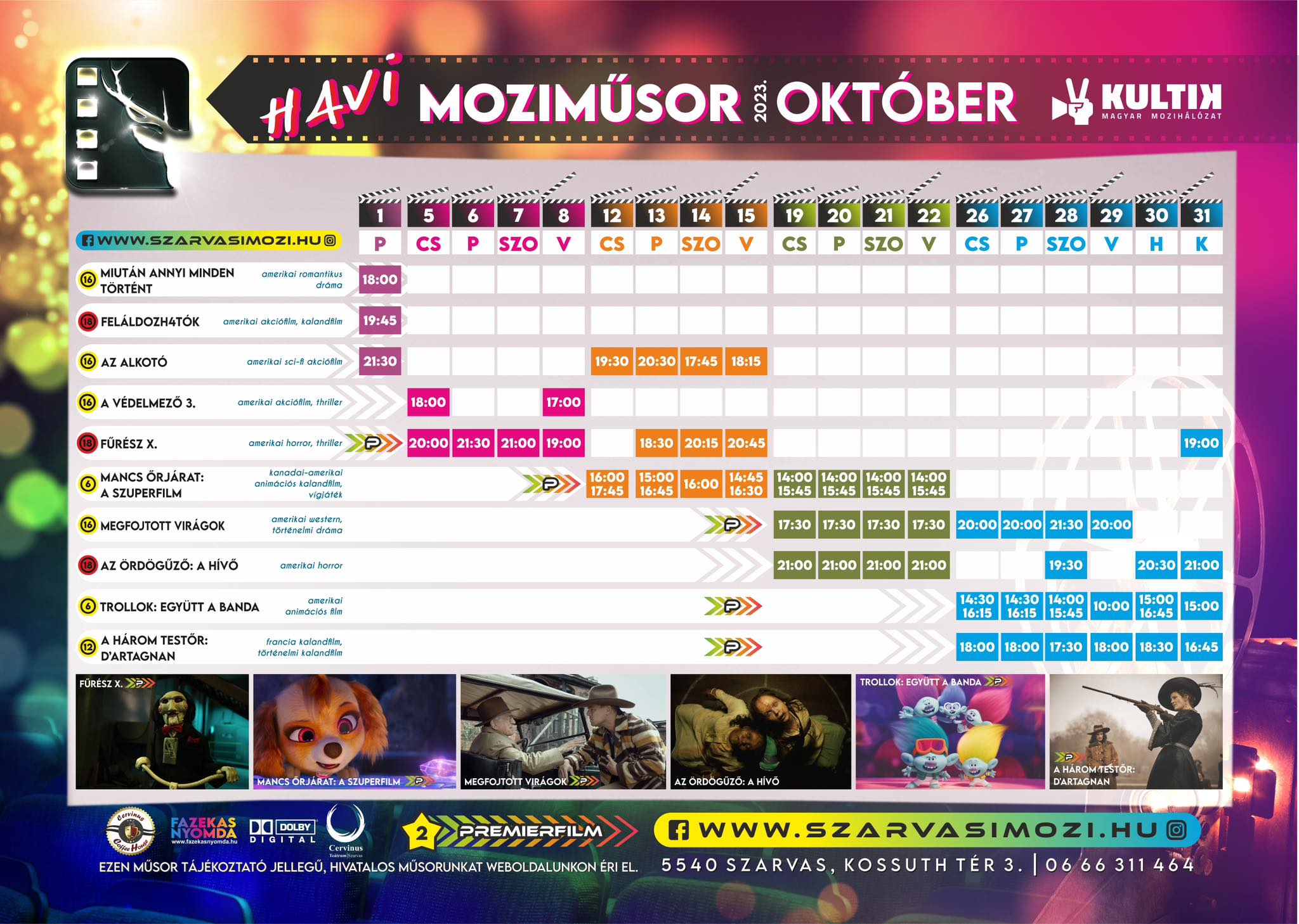 Októberi moziműsoroktHavi esemény (október) Szarvasi Mozi, Kossuth tér 3.