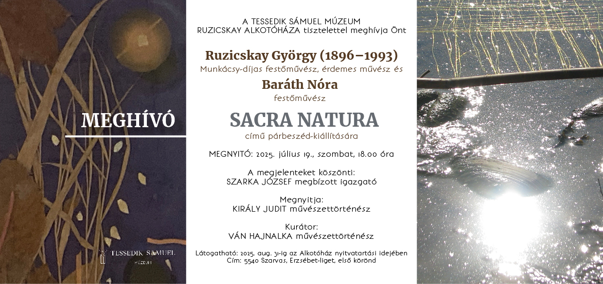 Sacra Natura - Ruzicskay György és Baráth Nóra párbeszéd-kiállításaszo19júl18:0018:00 Ruzicskay Alkotóház, Erzsébet ligetCompleted