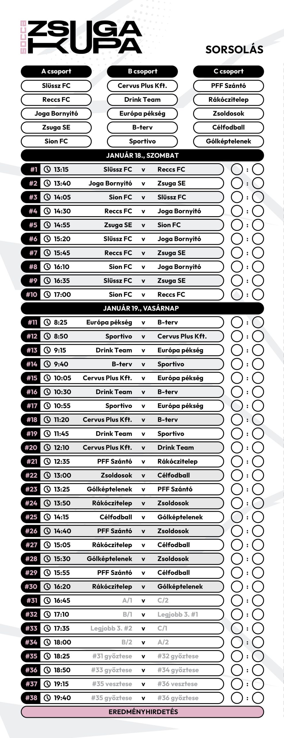 Hétvégén elrajtol a szarvasi SOCCA Zsuga Kupa, ahol idén 15 csapat száll versenybe a győzelemért. Az esemény nagy érdeklődésre való tekintettel két naposra bővült: a mérkőzések szombaton délután kezdődnek, a döntőket és a legizgalmasabb összecsapásokat pedig vasárnap rendezik meg.