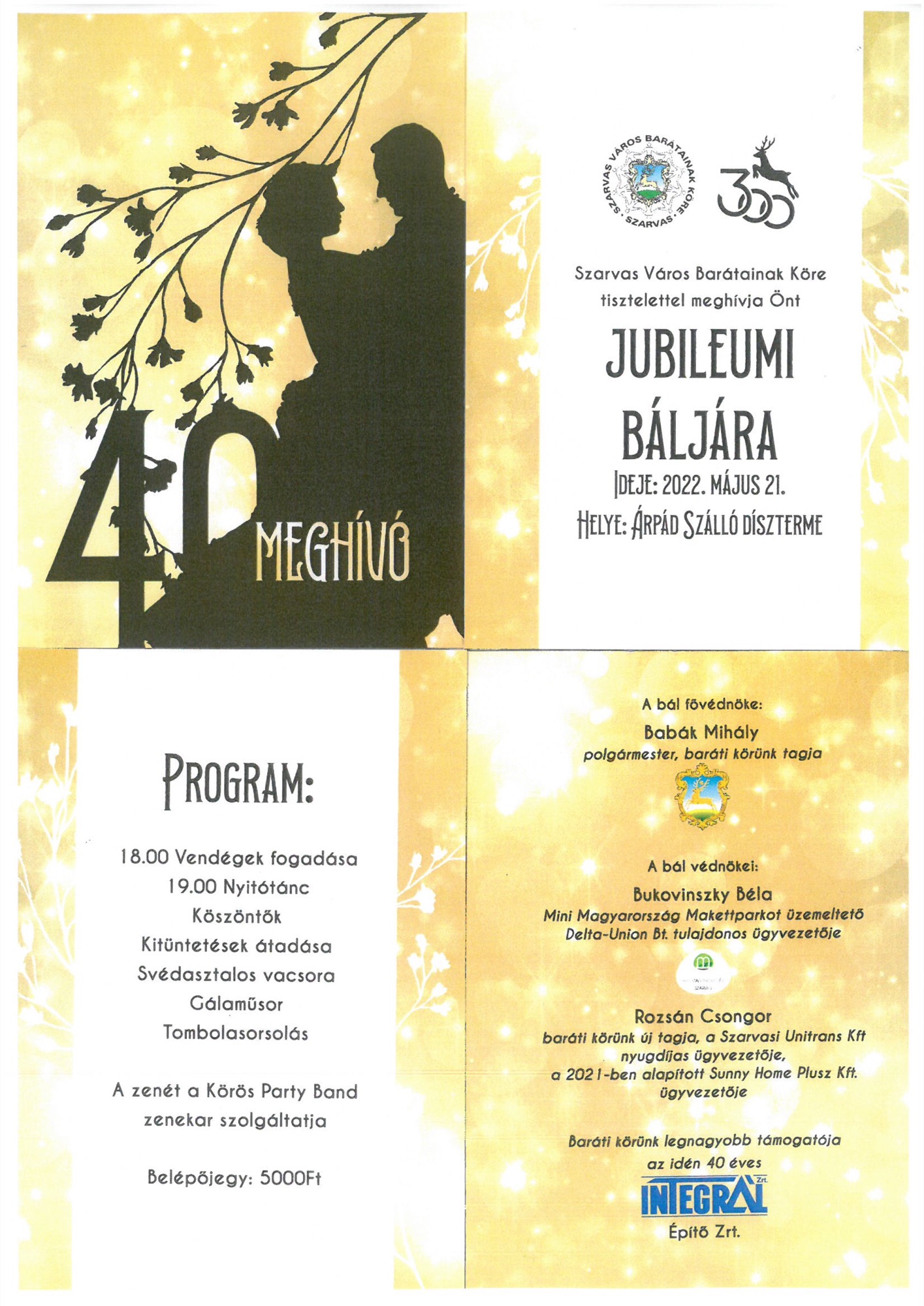1. május 21-én (szombaton) 18:00 órától az Árpád dísztermében, melyre nagy tisztelettel ezúton hívunk meg a bálon történő részvételre.