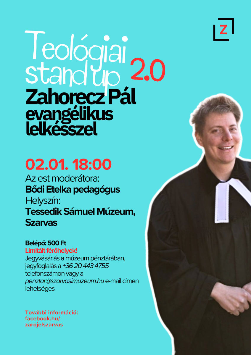 Teológiai stand up 2.0 - Zahorecz Pál evangélikus lelkésszelszo01feb18:0018:00 Tessedik Sámuel Múzeum, Vajda Péter u. 1.Completed