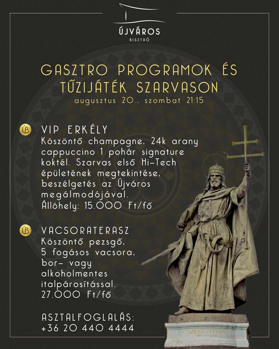 Augusztus 20-án a szarvasi Újváros Bisztróból csodálhatod meg a város látványos tűzijátékát.
