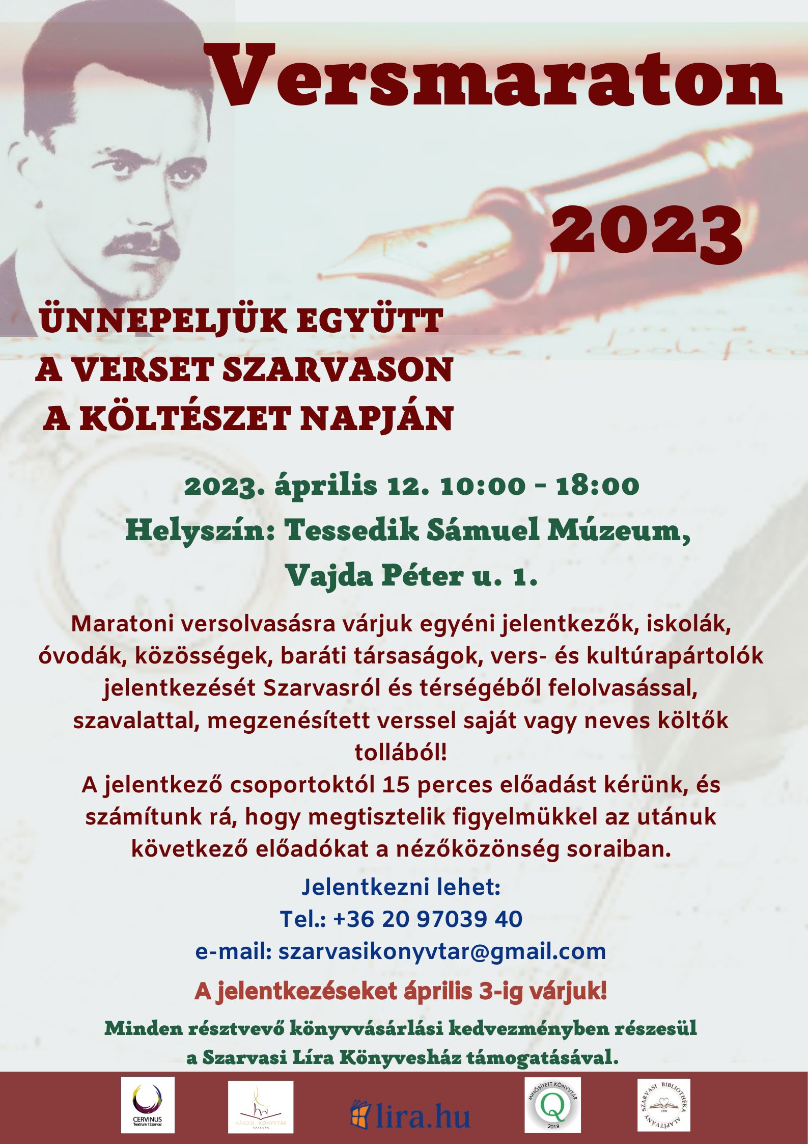 Versmaraton - 2023sze12ápr10:00sze18:0010:00 - 18:00 Tessedik Sámuel Múzeum, Vajda Péter u. 1.Completed