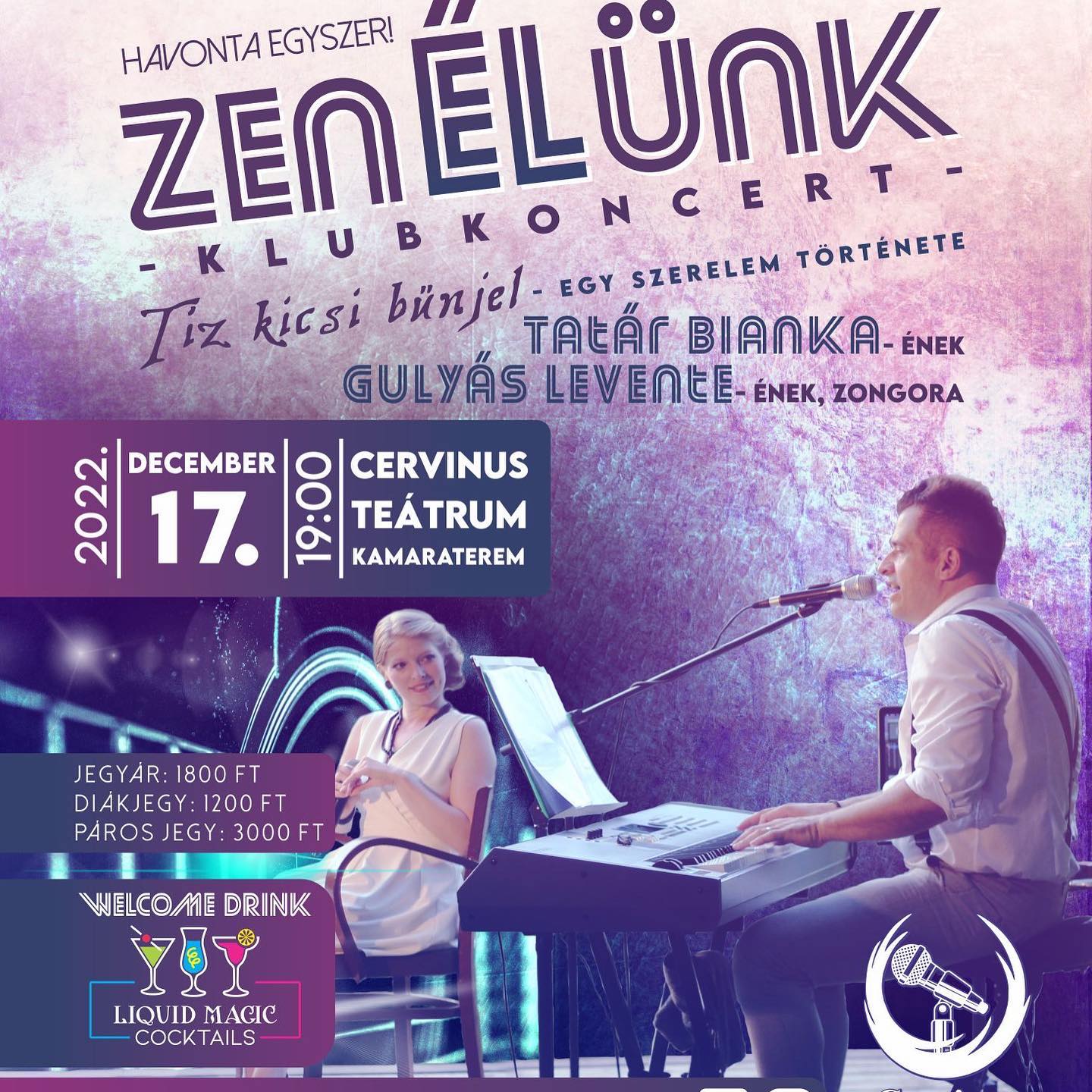 Zenélünk – Tatár Bianka és Gulyás Levente klubkoncertjeszo17dec19:0019:00 Cervinus Teátrum, Kossuth tér 3.Completed