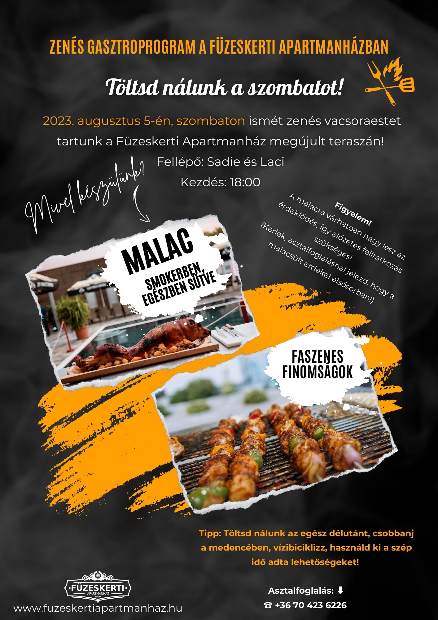 Zenés vacsora a Füzeskerti Apartmanházbanszo05aug18:0018:00 Füzeskerti ÉtteremCompleted