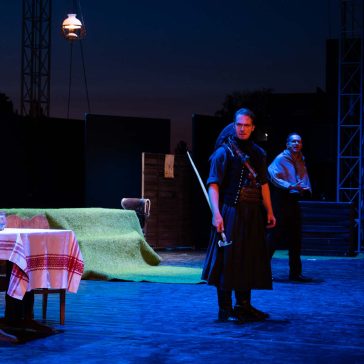 • A kényszerből betyárrá lett Sándor és Herz Konrád szerepében Szente Árpád Csaba és Varga Viktor a Békési betyárok előadásán 2022. július 19-én