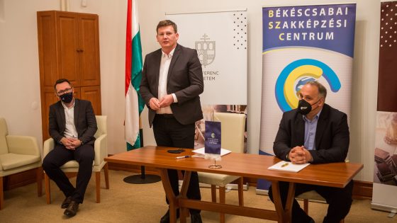 • A BSZC és a Gál Ferenc Főiskola között együttműködési megállapodást írtak alá. A képen Varga Tamás alpolgármester, Bíró Gyula képzésfejlesztési igazgató és Mucsi Balázs igazgató (Fotó Bencsik Ádám / Békés Megyei Hírlap)