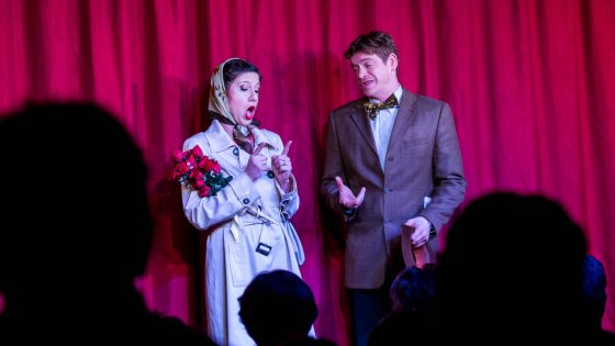 • Komáromi Anett, Sinkó Réka és Szemán Béla a Holdvilágos éjszakán című vidám kabaré egy jelenetében.