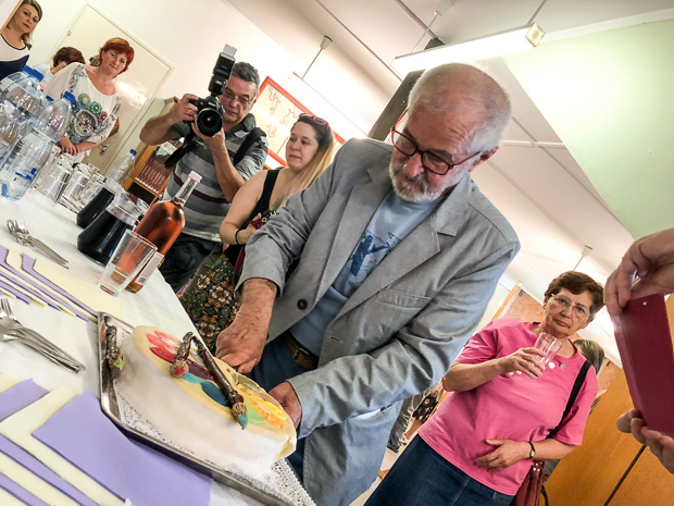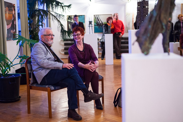 • Prokai Gábor művészettörténész, Lous Stuijfzand és Lóránt János a kiállítás megnyitóján