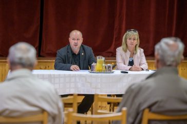 • Sinka Imre polgármester és Csépainé Tóth Gabriella jegyző a 2023. október 24-én tartott közmeghallgatáson.