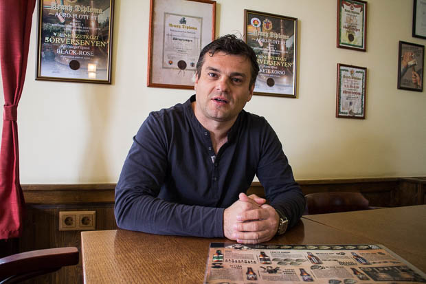 • Kupecz Tamás az ászokolóban a Monarchistát kóstoltaja
