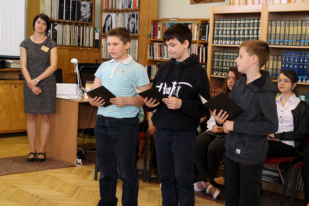 • A Versmaraton idei versfolyamának kezdetén a Városi Könyvtárban.